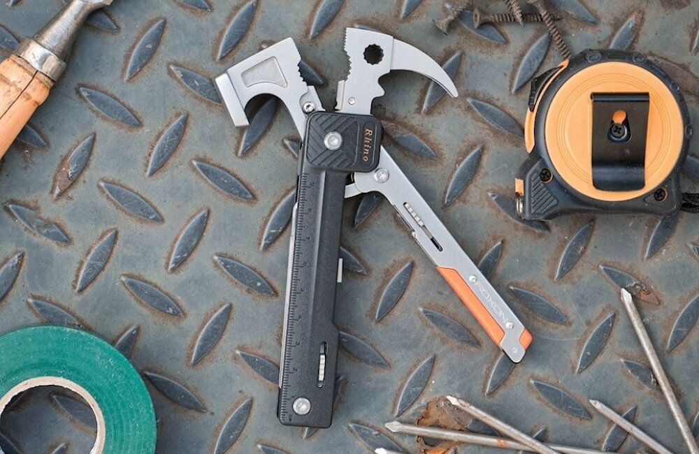 «Носоріг», як назвав аксесуар сам виробник, може виконувати функції як молотка-цвяходера й гайкового ключа, так і ножа, плоскогубців та інших інструментів, які є класичними складовими сучасних мультитулів. Усього 17 функцій, що вміщуються в конструкції розміром 151.5 мм (довжина) х 79 мм (ширина) х 22.4 мм (товщина).