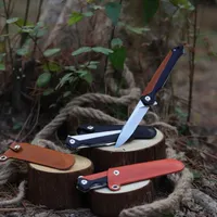Рукоятка інструменту виготовлена з двох матеріалів: міцного композиту G10 та м'якої шкіри, що покриває її верхню частину. Конструкцію доповнює титановий осьовий гвинт, що переливається на світлі, і піхви, пошиті зі шкіри в тон кольору рукояті: помаранчеві, коричневі і чорні.