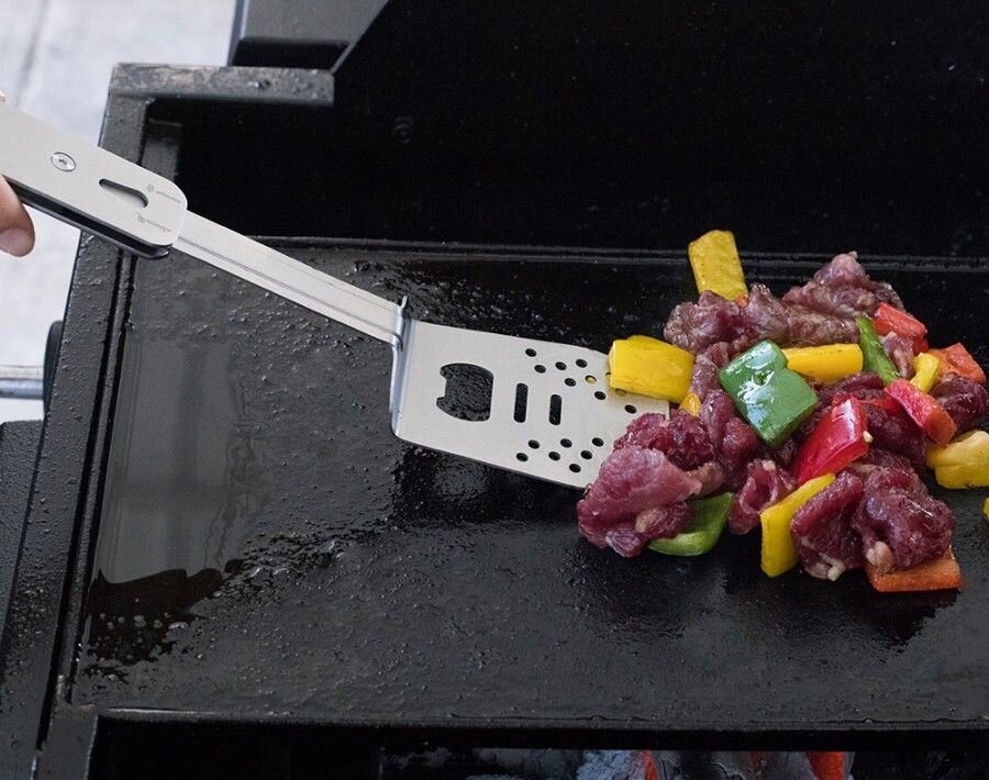 Цього достатньо для проведення всіх маніпуляцій під час приготування їжі на мангалі та грилі. Набір можна доповнити силіконовим пензликом для змащування продуктів маслом або соусом, а також не можна забувати про рукавиці (попри довгі ручки, набір для барбекю не здатний уберегти руки від попадання попелу).