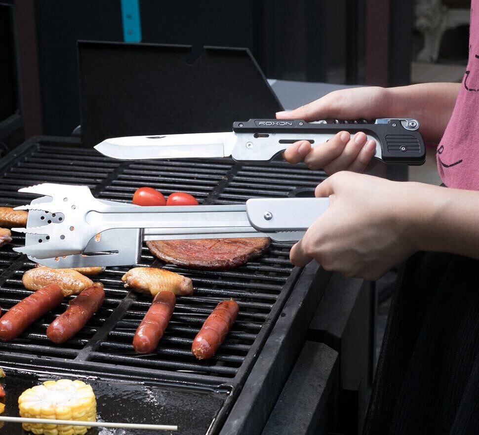 Показовим є мультитул Roxon S601 з шістьма функціями, який окрім основного приладдя включає дрібні доповнення у вигляді штопора та відкривалки для пляшок. Особливістю моделі є варіативність експлуатації: основні інструменти можуть від'єднуватись один від одного при натисканні кнопки блокування та використовуватись окремо. Лопатка та вилка кріпляться до ножа та утворюють імпровізовану лопатку, яку можна використовувати для перевертання м'яса. Процес полегшують чотири гострі зубчики вилки, які запобігають зісковзанню їжі з лопатки. Всі інструменти виготовлені з нержавіючої сталі 5Cr15MoV, яка має корозійну стійкість.