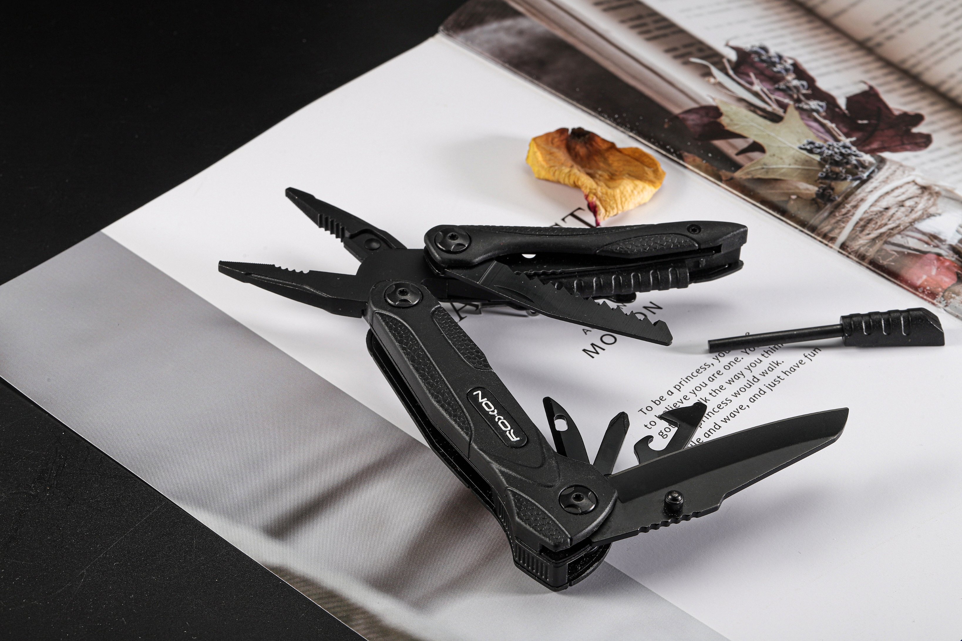 Користувачу доступно 14 функцій, у тому числі мініатюрне кресало, яке вставляється у спеціально відведений паз у бічній частині рукоятки, та вбудований у ручку кресала свисток. Основний клинок виготовлений із сталі 2Cr13MoV, а плоскогубці – із 3Cr13MoV. Обидва матеріали відносяться до нержавіючого типу і невибагливі до догляду: достатньо витирати інструмент після використання та стежити, щоб він зберігався в сухому місці.