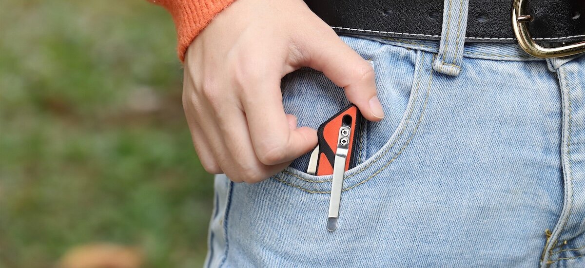 Кишеньковий чи EDC ніж має складану конструкцію, в якій клинок ховається в руківʼя. Незалежно від дизайну конкретної моделі, всі вони націлені на одне — запропонувати швидке вирішення завдання, в якому потрібне гостре лезо. Дрібні конструкційні особливості можуть доповнити основний функціонал, наприклад, серейторне заточування для швидкого різання волокнистих матеріалів або упор на обуху для пальця та виконання силових робіт.
