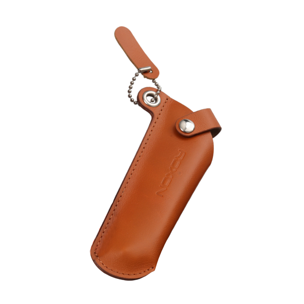 Ніж фіксується у чохлі за допомогою металевої кнопки, яка надійно утримує інструмент усередині та не дає йому випасти під час транспортування. Розміри чохла становлять 142.5 х 60.9 х 8.7 міліметрів. У бічній частині аксесуара є наскрізний отвір. У нього можна просмикнути темляк або кільце з карабіном, щоб пристебнути чохол до пояса або лямки рюкзака. Вага шкіряного чохла складає 13.4 грами.
