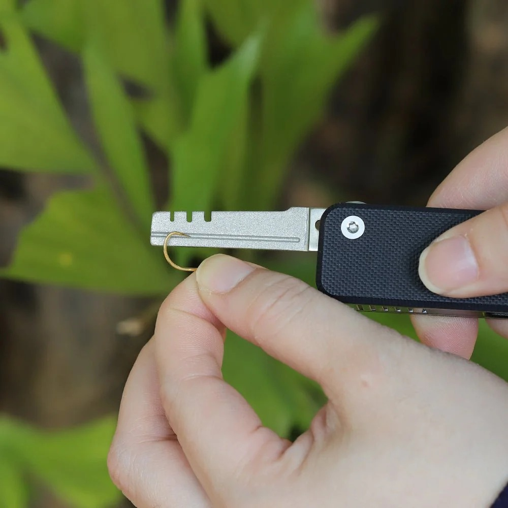 Змінний інструмент FTS1-5 доповнює мультитул Roxon Flex S804 кількома функціями, які будуть корисними для любителів риболовлі. У виробі передбачено кілька пазів для заточування рибальських гачків різного розміру, дозволяючи швидко та якісно загострити снасті, не перериваючи процес лову. Абразивна поверхня з алмазним покриттям забезпечує точну та дбайливу обробку снастей для досягнення максимальної гостроти та підвищення шансів на вдалий улов.