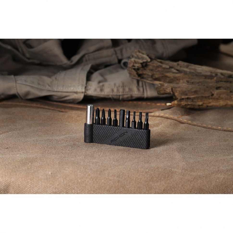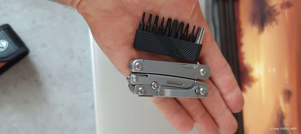 Міні мультитул, але в комплекті навіть біти є! При чому, всі найпоширеніші варіанти різьблення. В моїй широкій лодоні мультитул комфортно лежить, під час користування ним не виникає проблем із закріпленням інструменту у відкритому положенні. Планую мульт брати із собою на рибалку і возити його в бардачку машини - така річ може знадобитись в будь який момент