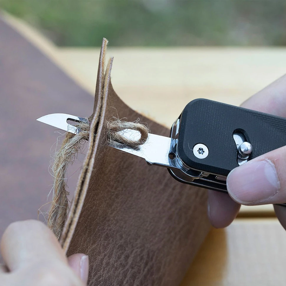 Набір функцій Flex S505G охоплює основні потреби: крім основних ножиць та клинка, у вашому розпорядженні є стамеска по дереву, два стрипери для дротів, плоска викрутка, напилок, лінійка, шило, нитковдівач, відкривачка для пляшок та консервних банок.