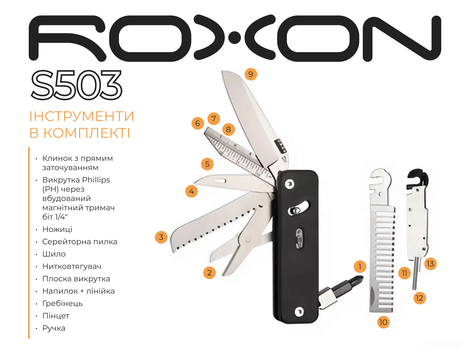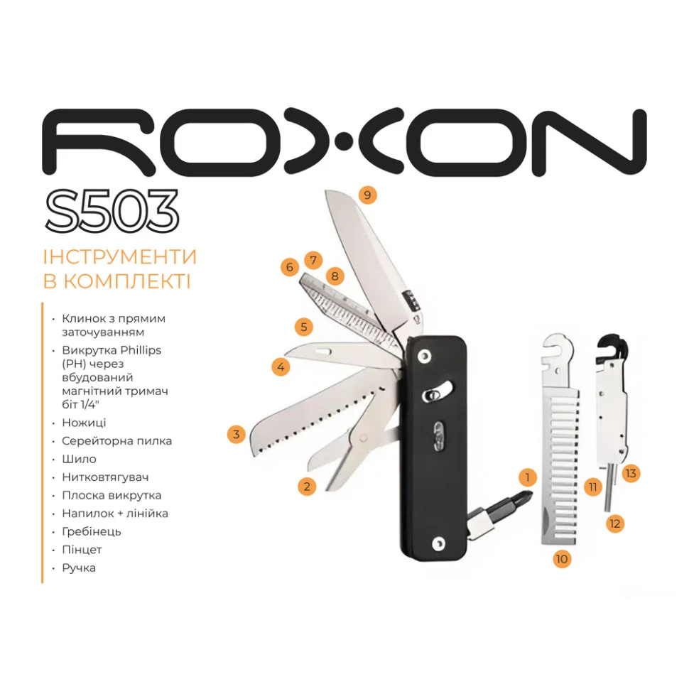 Roxon Flex Companion S503G має такі інструменти: