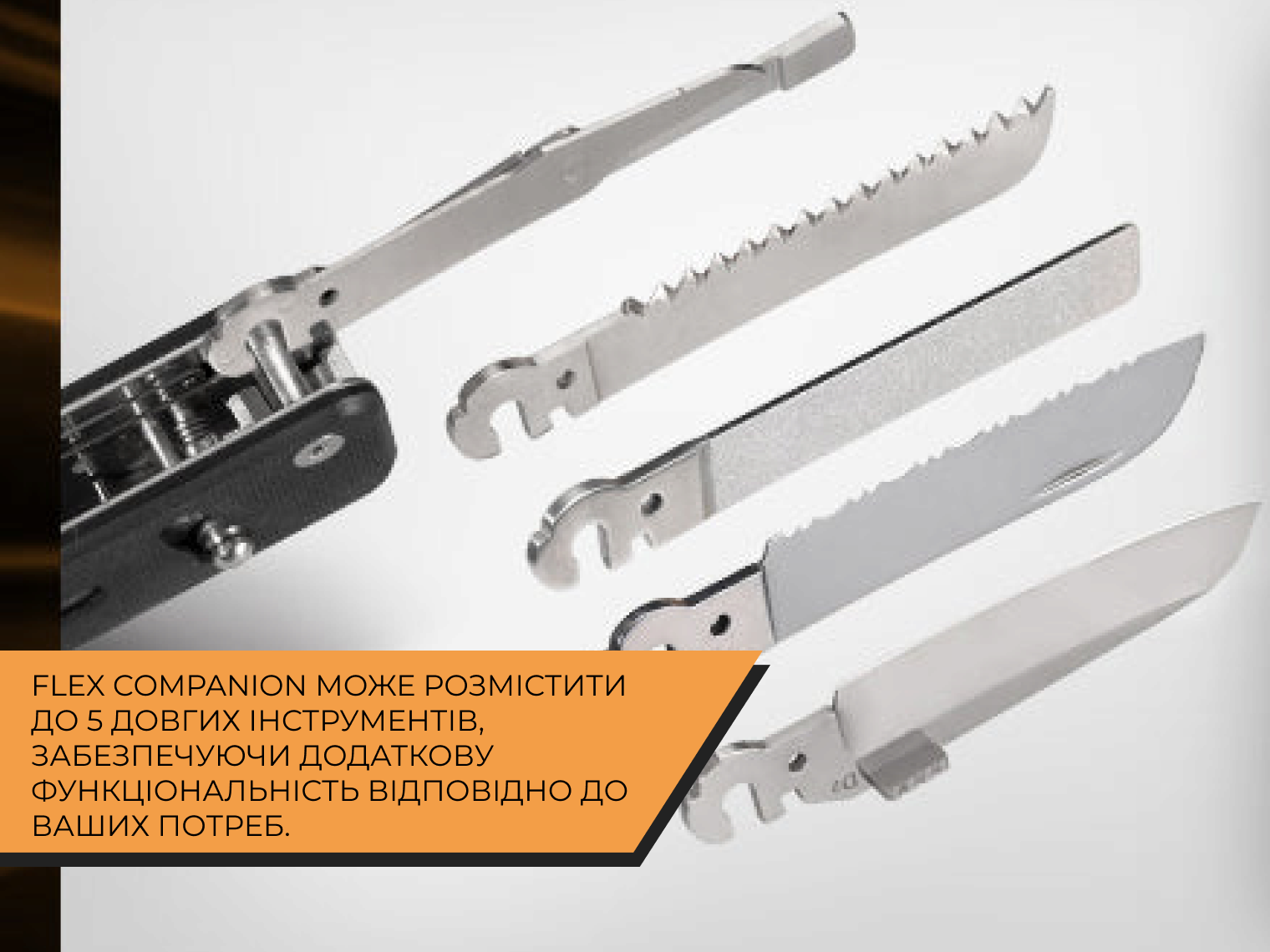 Мультитул Roxon Flex Companion S503G має унікальну особливість — модульну конструкцію. Ви можете збирати індивідуальний набір інструментів під власні завдання: для міста, велопоїздки, ремонтних робіт, кемпінгу та риболовлі. Водночас в дизайні збережена компактність, звична для мультитулів кишенькового формату — лише 9 х 2.3 х 2.2 см у закритому положенні.