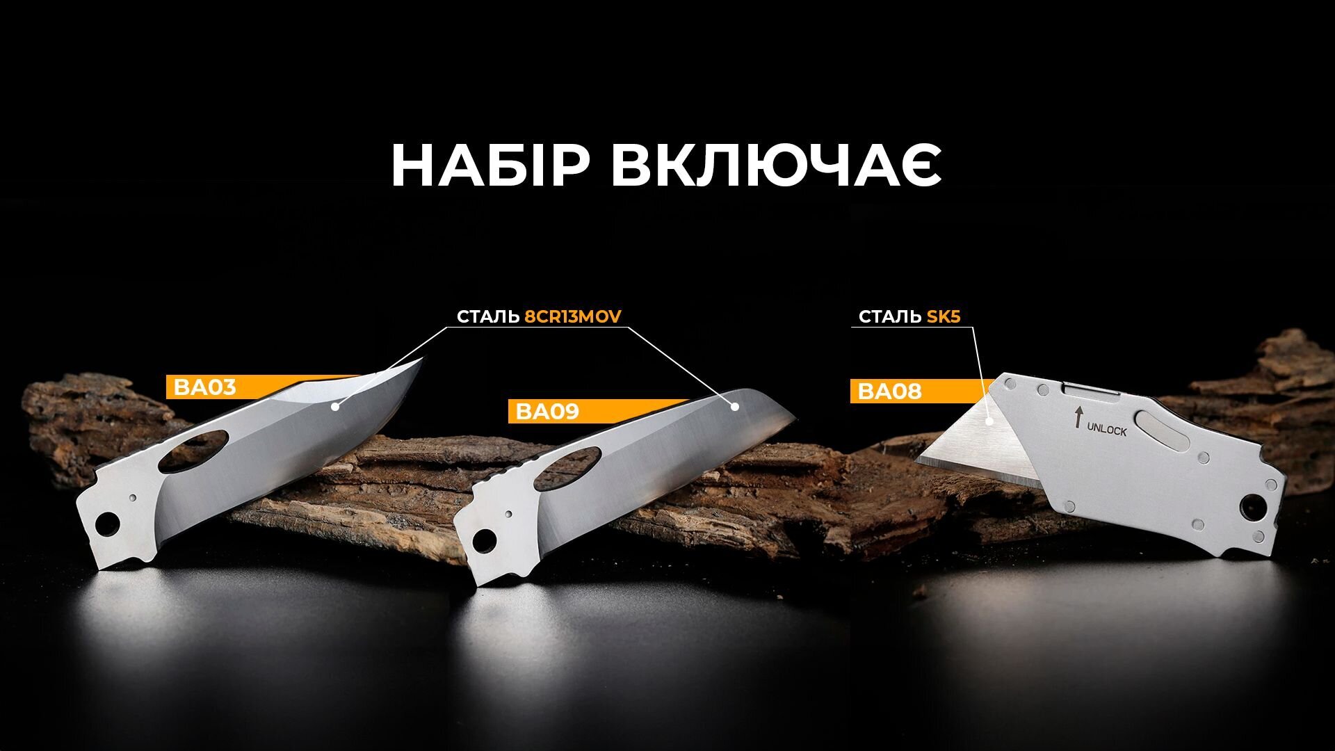 Опис набору змінних клинків (BA03; BA08; BA09) 3in1: