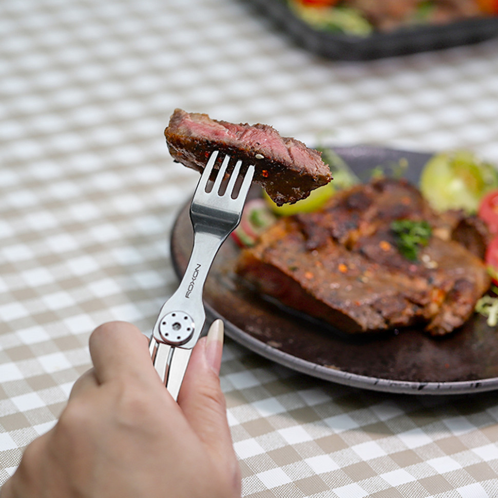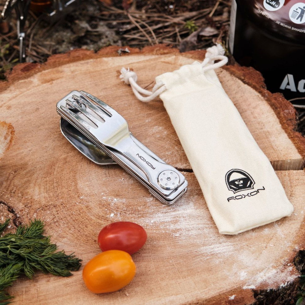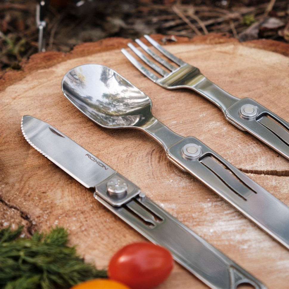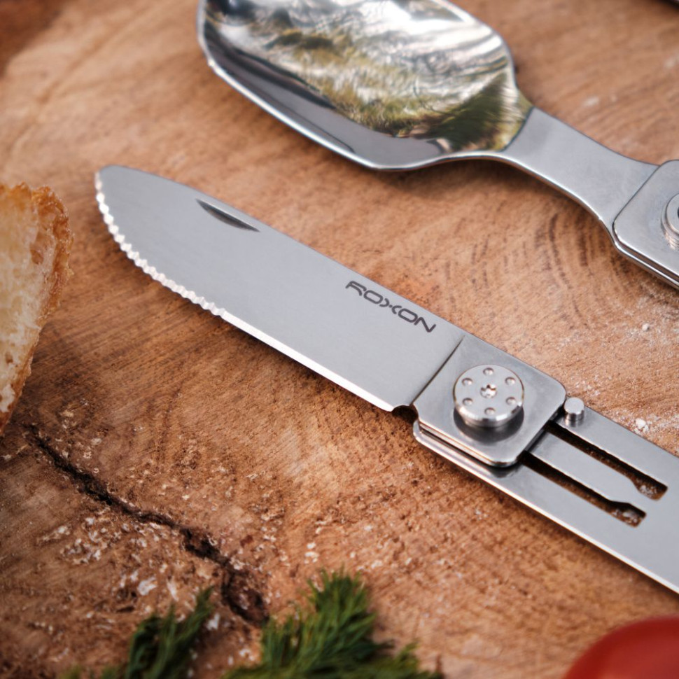 Завдяки наявності трьох основних столових приборів, набір Roxon C1S може похвалитися універсальністю та практичністю. Комплект складається з ложки, виделки та ножа, виготовлених з харчової сталі 420U6. Складові набору утримуються разом за допомогою байонетного з'єднання та магнітного контакту, а їх довжина не перевищує 101 мм у складеному вигляді, що спрощує транспортування. У відкритому положенні кожен прибор фіксується замком liner lock.
