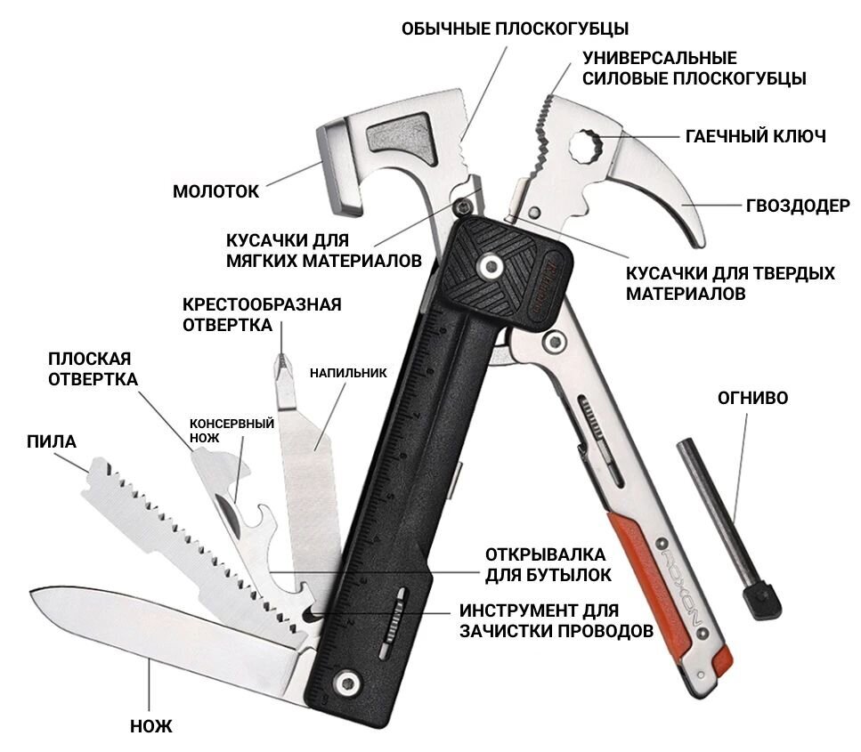 Теперь перейдем к самому интересному — набору инструментов, которые соединены в мультитуле.