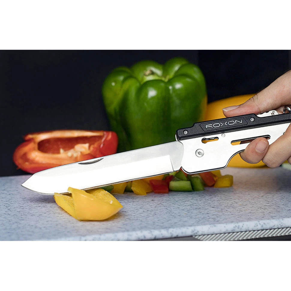Мультитул для барбекю Roxon S601 — это складной инструмент 6-в-1, который объединяет все необходимые приборы для приготовления и подачи блюд на гриле. В наборе есть вилка, лопатка, щипцы, нож, открывалка для бутылок и штопор.