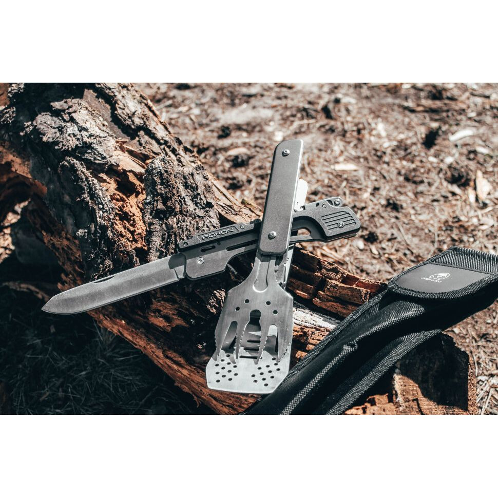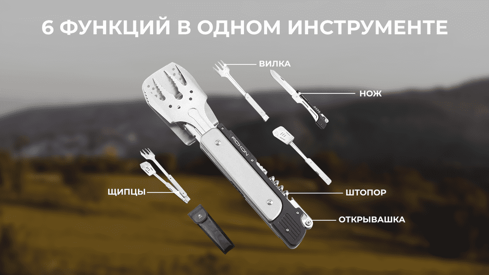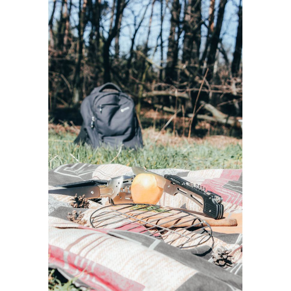 Модель Roxon Multi BBQ Tool предназначена для использования на пикниках и во время поездок в кемпинг. Это полноценный набор инструментов для приготовления любых блюд на гриле.