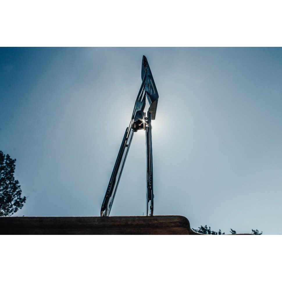 Нож Roxon Multi BBQ Tool сделан складным, чтобы его было удобно транспортировать. В сложенном состоянии он занимает гораздо меньше места и безопасен. Открыть клинок можно, поддев его ногтем за небольшую выемку на лезвии. Кстати говоря, нож оснащен замком Safety lock, чтобы и работать с ним было безопасно. Форма клинка у этой модели класическая – Drop point.