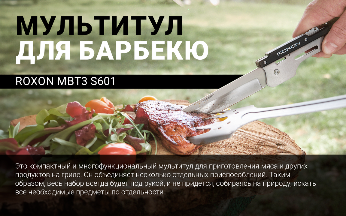 Roxon Multi BBQ Tool – полезный и компактный инструмент для приготовления мяса или других продуктов на гриле.