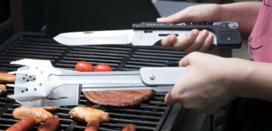 Каждая отдельная деталь работает отлично, и когда вы соединяете вилку и лопаточку, щипцы работают отлично. Нож тяжелый и прочный. Все вещи легко складываются и соединяются вместе, обеспечивая сверхкомпактное хранение.