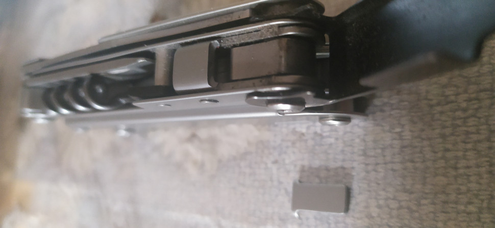 Единственным небольшим недостатком мультитула является НЕ срабатывание автоматически фиксатора ножа при его открытии. Скорее всего, подобранная металлическая планка недостаточно пружинит. Но её можно самостоятельно поддвинуть под нож ногтём - она становится на положенное ей место и надёжно фиксирует лезвие ножа от случайного закрытия.