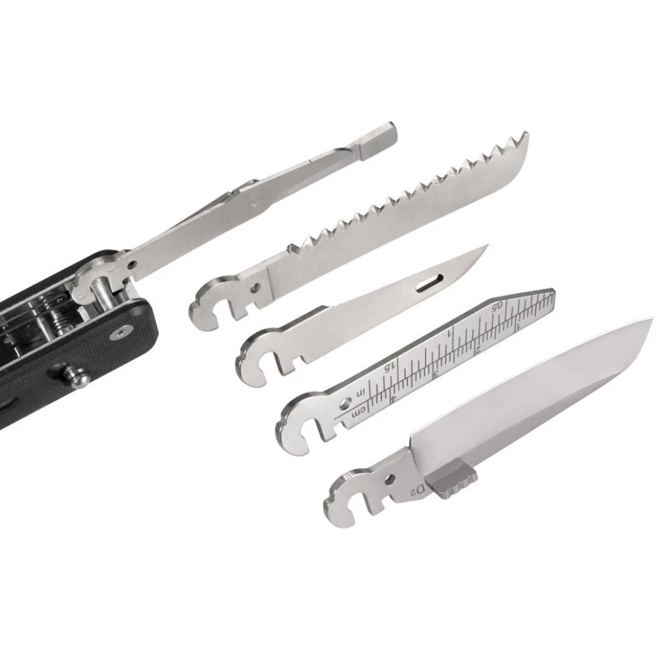 Мультитул Roxon Flex Companion S503G имеет уникальную особенность — модульную конструкцию. Вы можете собирать индивидуальный набор инструментов под собственные задачи: для города, велопоездки, ремонтных работ, кемпинга и рыбалки. При этом в дизайне сохранена компактность, привычная для мультитулов карманного формата — всего 9 х 2.3 х 2.2 см в закрытом положении.