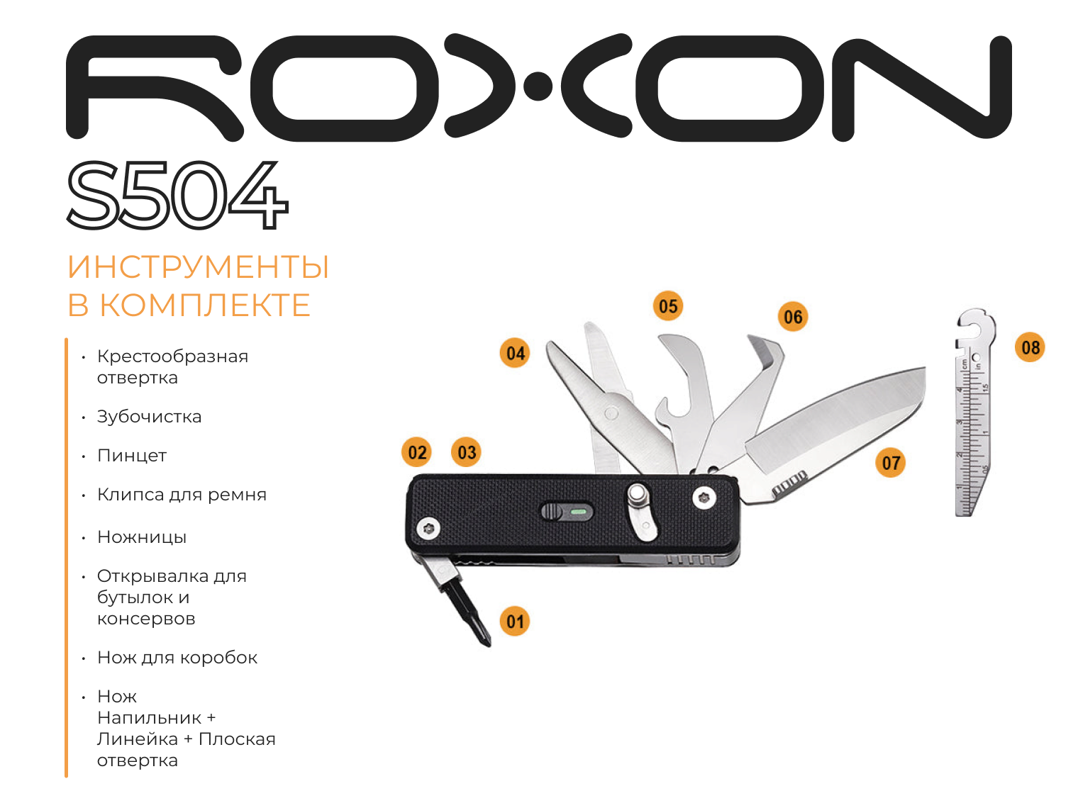 Функции мультитула Roxon Mini Flex Companion S504G: