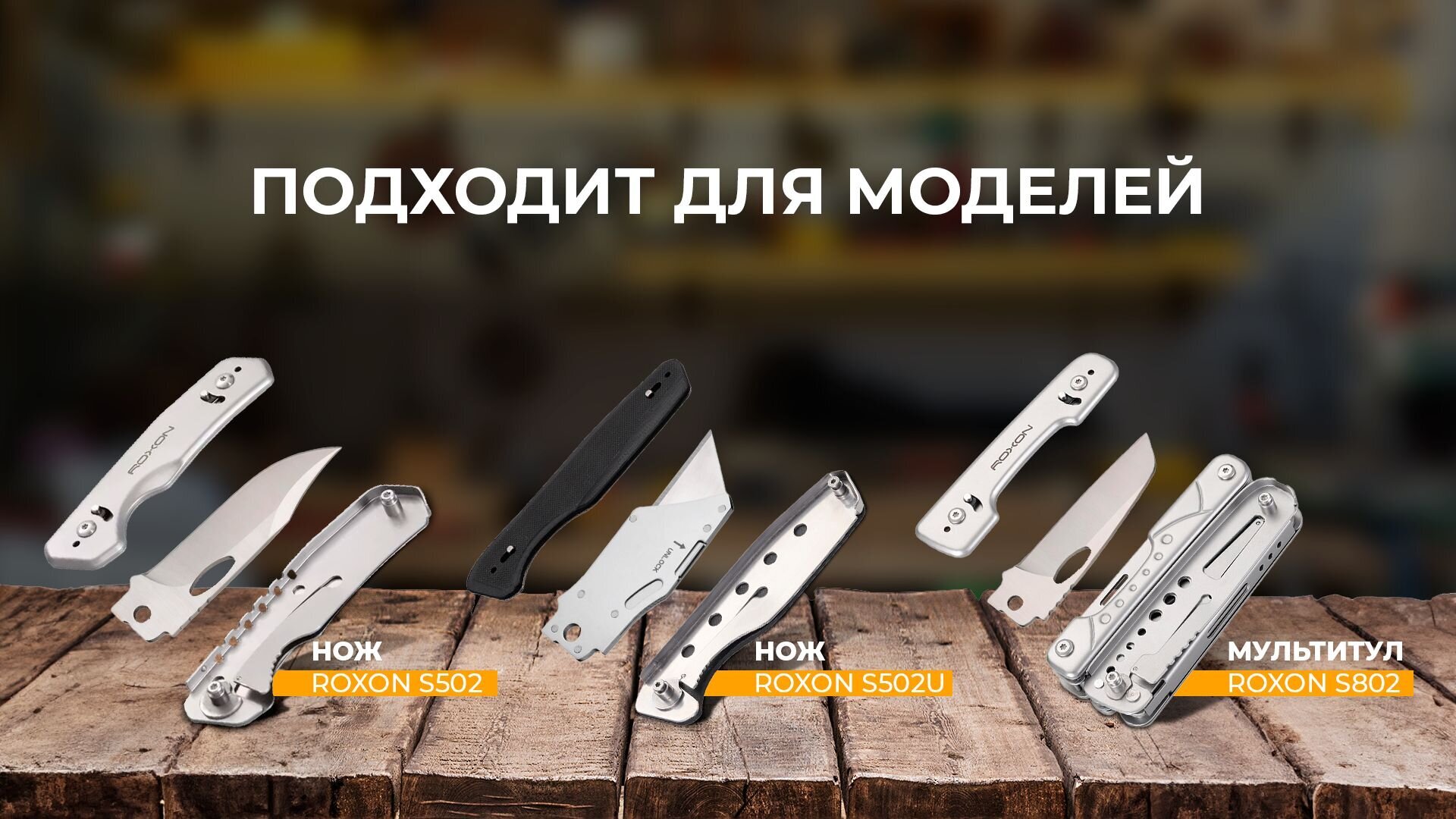 Каждый из клинков можно использовать вместе с фирменными инструментами: складными ножами S502 Phantasy и S502U, а также мультитулом S802 Phantom. В зависимости от типа лезвия, аксессуары эффективно справляются с отдельными видами работ.