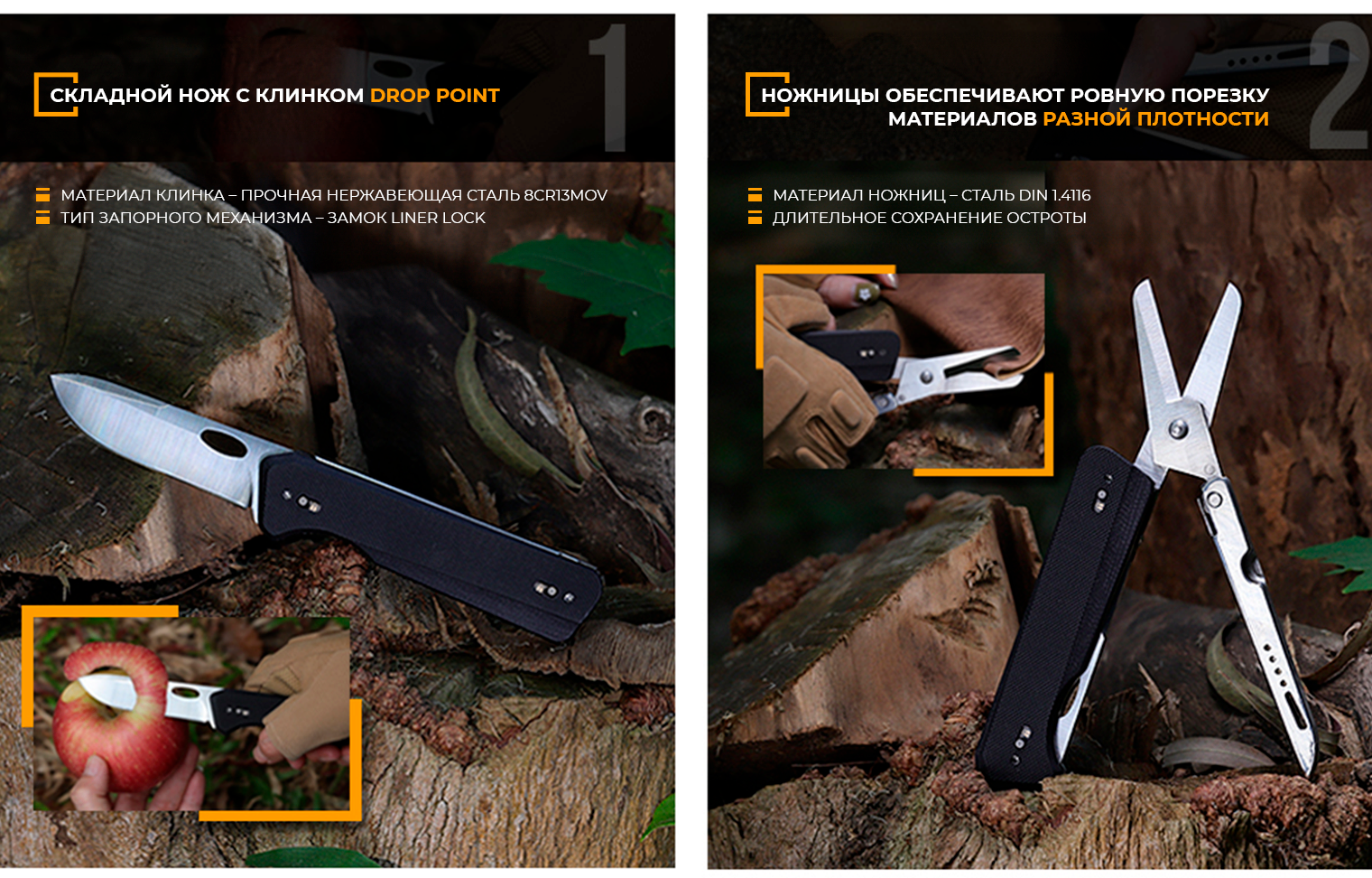 - мультитул с клипсой для повседневного ношения, активного отдыха, рыбалки, охоты, кемпинга;