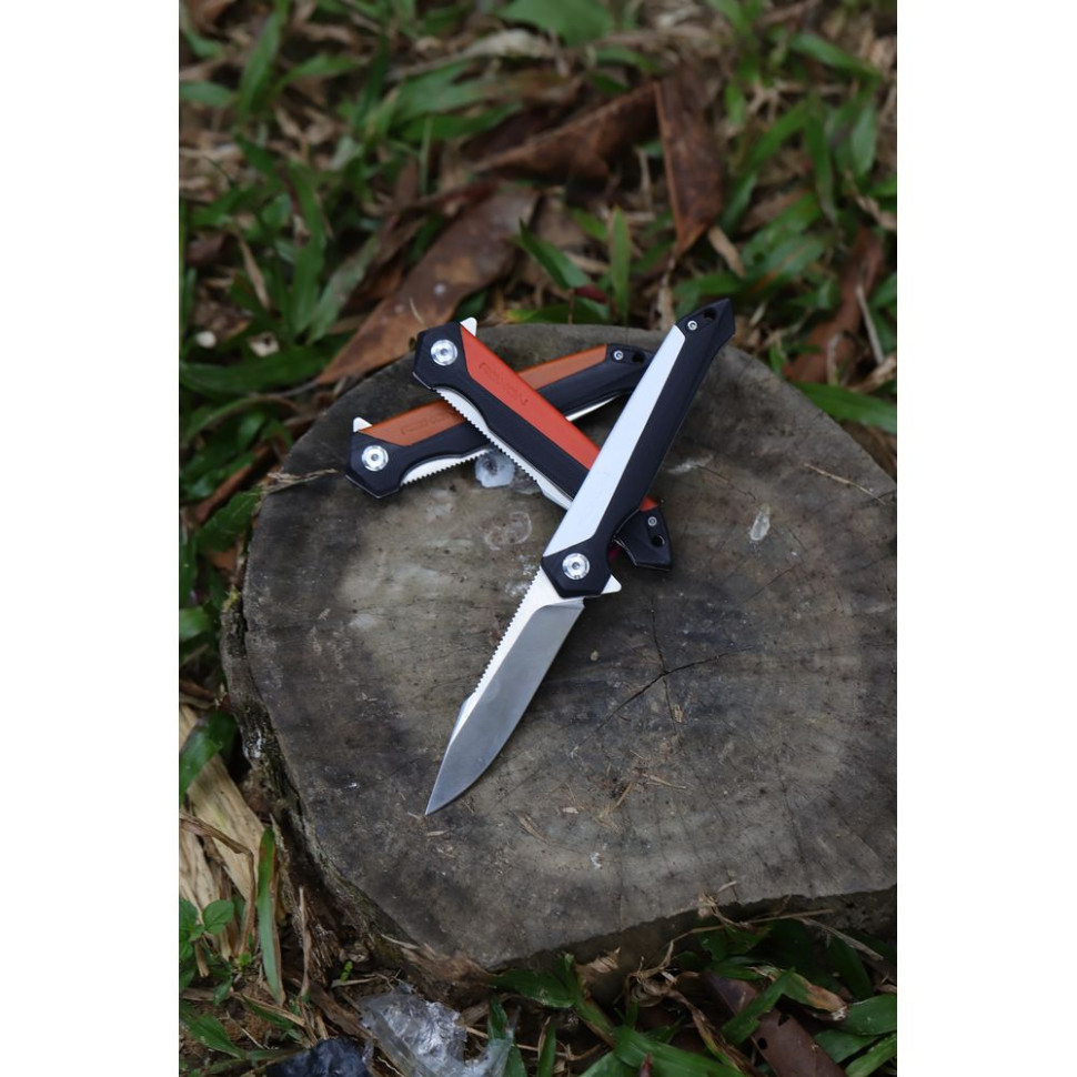 Складной нож Roxon K3 является удобным туристическим инструментом, рассчитанным на интенсивное применение. Разные варианты цвета модели – белый, коричневый, оранжевый. Особенность ножа – в наличии характерных насечек на обухе. Удобен в удержании, прост в использовании, открывать и закрывать можно одной рукой. Форма клинка – drop-point, считающаяся универсальной разновидностью. Таким лезвием легко выполнять как колющие, так и режущие, движения. Клинок оптимален для нарезания, выковыривания, очистки, рубки и различных иных операций.