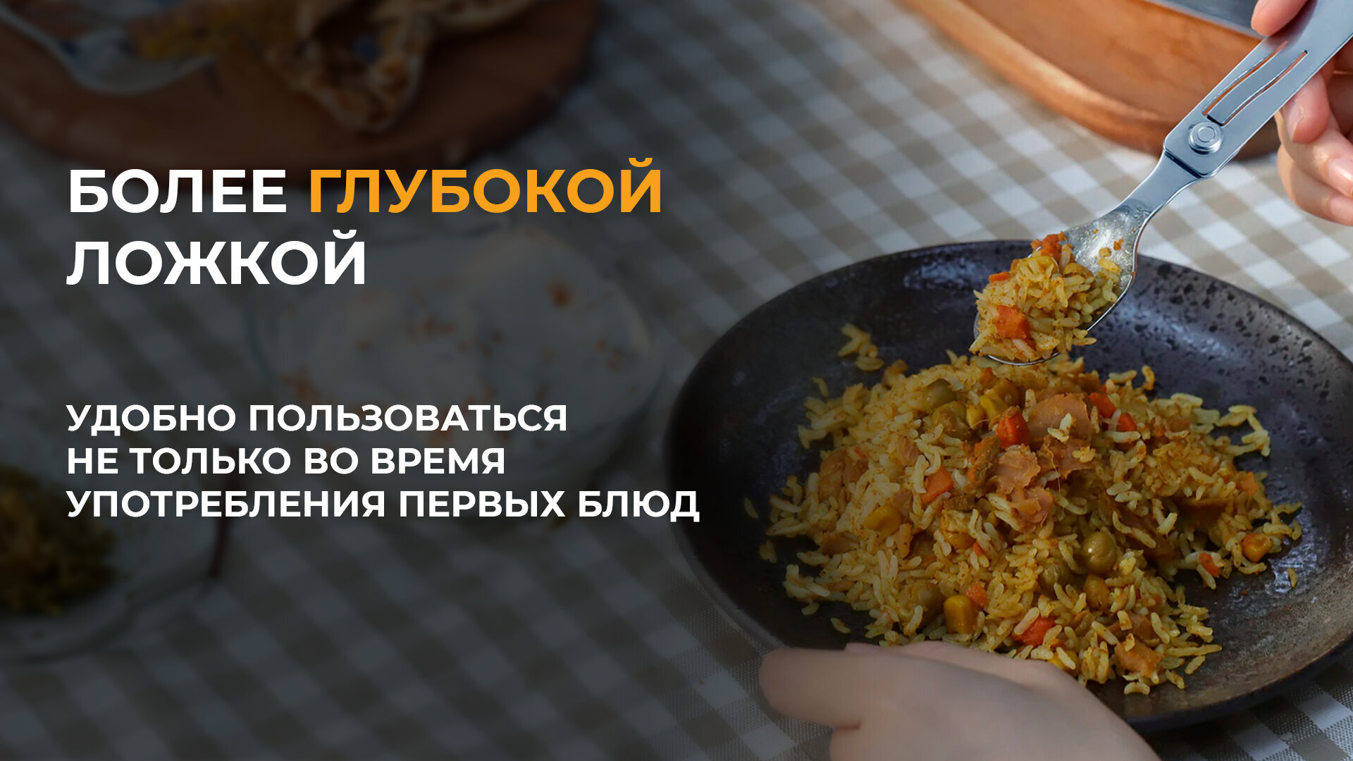 - в комплект входит ложка, вилка и нож с комбинированной заточкой;